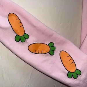Snack expert bunny with glasses graphic sweatshirt with carrots down both sleeves. Super cute and cozy!