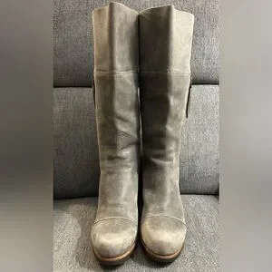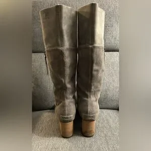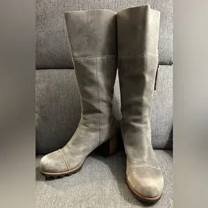 Sorel Addington Distressed Gray Leather Tall Heeled Boots size 9
