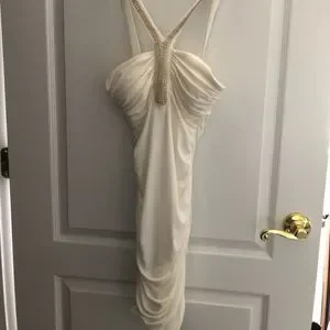white dress with beads brought from macy’s size small only worn once not see through at all