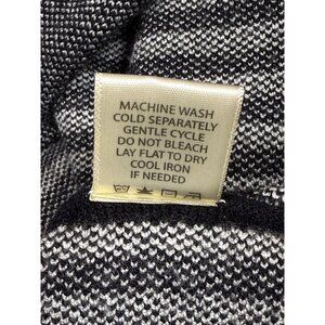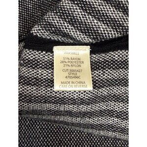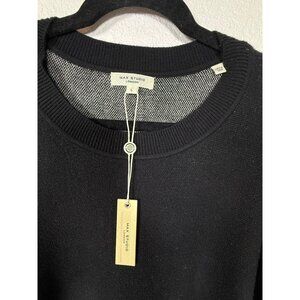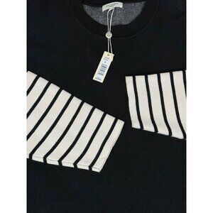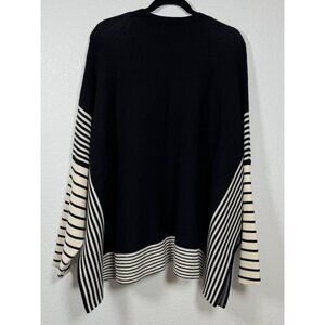 This large Max Studio London sweater combines style and comfort, featuring a striking black and white striped pattern.