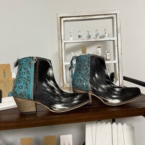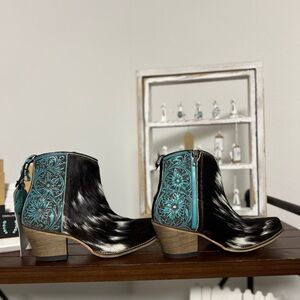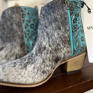 NEW Turquoise Tooled Leather Genuine Hide-on Women Bootie Cowboy Boot Western