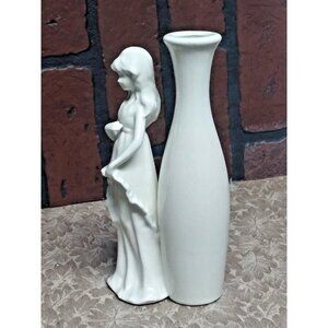 Vintage MCM Bud Vase w/Lady/woman Ceramic 7 3/4" white w/hint of blue Gorgeous