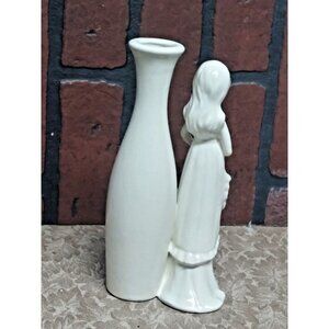 Vintage MCM Bud Vase w/Lady/woman Ceramic 7 3/4" tall x 4" wide, white w/hint of blue Gorgeous