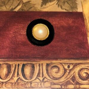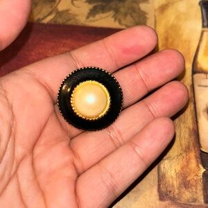 Vintage Allison Reed Black Enamel & Faux Pearl brooch. Approx 1 inch .