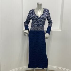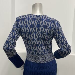 St. John Evening Santana Women Long Sleeve Knit Midi Dress Blue Multi Size 4