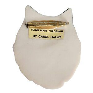 Carol Halmy Handmade Porcelain Cat Brooch Pin, Signed