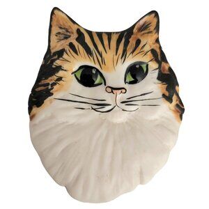 Embellish any top with this adorable pin that is the perfect accessory for any costume, party, or everyday outfit. You will love the way it looks on your stylish feline friend! Measures 3 inches in length and 2.4 inches wide. The back has a sticker "HANDMADE PORCELAIN BY CAROL HALMY". It has a secure rollover clasp at the back.