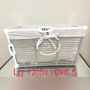 These storage organization baskets feature a stylish gray wicker design with a soft, light gray fabric liner and charming bow accents, adding both functionality and aesthetic appeal to your home decor.
