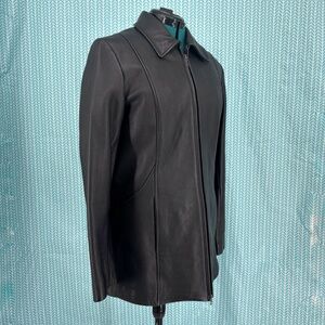 Danier Leather Brown Black Zipper Front Lined Car Coat with Pockets, Medium