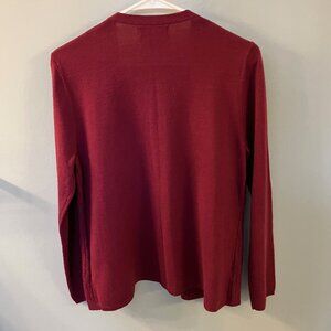 Sag Harbor Women's NWOT Burgundy Mock Layer Sweater. Size Medium. Nice Design on outer layer front. Clasp closure. Made from 100% Acrylic. Measurements are: Length - 25 inches; Bust - 38 inches; Sleeve Length from Pit to Sleeve Hem - 18 inches. Excellent condition.
