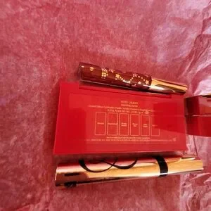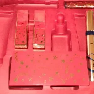 NWOT Estee Lauder 2023 Red Velveteen Train Case style Cosmetic Bag with zippered compartments, never used. Includes new, never used Estee Lauder Cosmetic Products-- some were original to this case, some have been added to bag: Limited Edition Celestial Glow Eye Shadow Palette; Limited Edition Ruby Quartz Lip Gloss; Limited Edition Lipsticks Starlet Red & Constellation Rose; Sumptuous Extreme Mascara in Extreme Black; 3.4oz Gentle Eye Make-up Remover. Case is apprx. 9" x 12" x 4.5". Great gift idea or indulge yourself!