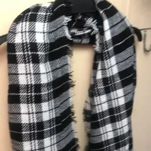 Black and white plaid blanket scarf