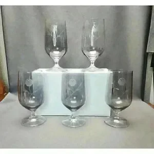 Schott Zweisel Nekar Smoke Etched Rose Crystal Iced Tea Water Glasses (Set of 5)