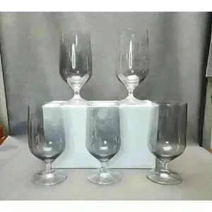 Vintage Schott Zweisel Nekar Smoke (Iridescent) Rose Cut Crystal Iced Tea / Water Goblets (Set of 5)
