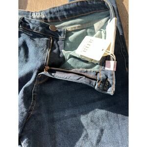 These jeggings are a perfect wardrobe staple. They come is a dark wash and have a classic fit. They are a high-rise style with a zipper and button closure. Classic five-pocket design. They are fitted in the hips and thighs. They are a skinny leg style but they have a super soft stretch. The ankle hems have a cool frayed detail. New with tags.