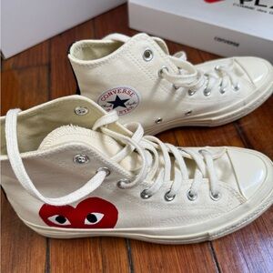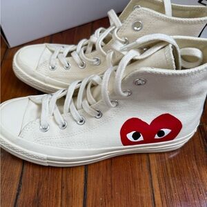 The classic unisex Converse Chuck 70 sneaker, as shown in their “milk/white” color, (which is more cream). These are in mint condition, I’ve only worn a handful of times.