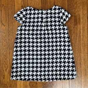 Classic cap-sleeve A-lined dress, 12-18 months Janie and Jack black and white houndstooth dress with bow detail down front. Three black buttons at the back. Fully lined with coordinating bloomers. Great condition from our smoke and pet free home.