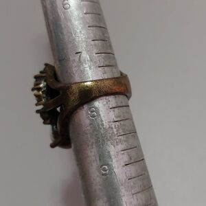 Vintage Faux Stone and Rhinestones Decorated Brass Ring Size 6.75 - 7.75