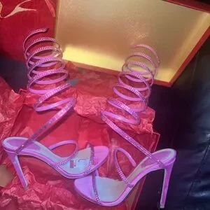 RENE CAOVILLA Pink Crystal Wrap-Up Heel