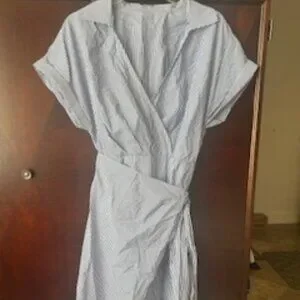 CUPSHE Women's Blue Pin Stripe Collared Wrap Midi Beach Dress, Medium