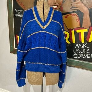 Vintage Liz Sport Blue & Gold Chunky Textured Knit Sweater in great condition with no major flaws Acrylic/Wool blend