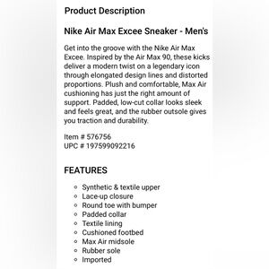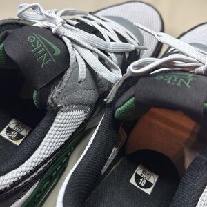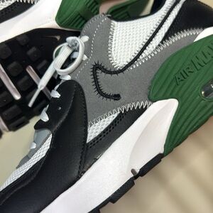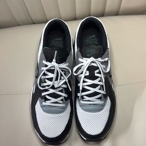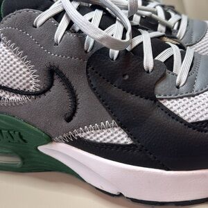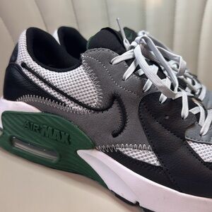 Pre-owned, But NEVER WORN. These shoes are in "New" Condition. Men's size 10 - Nike Air Max Excee. Black Leather w/ Grey suede & Green & White Accents.