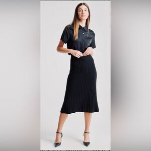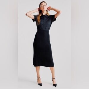Elegant Quince Mongolian Cashmere Midi Black Ribbed Knit Skirt. New with Tags.