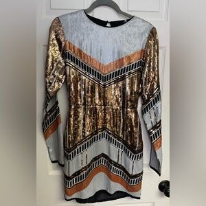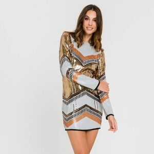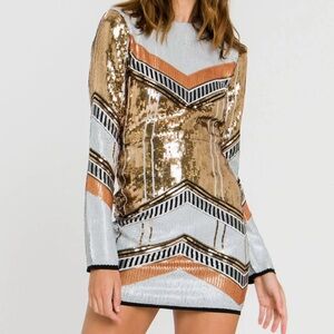 Endless Rose Sequin Backless Mini Dress Size Small Gold Black White NEW