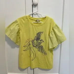 Kenzo Girl yellow T-Shirt size 8. Good condition. With embroidery blue bird. Cotton t-shirt.
