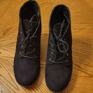 Women's X-Appeal Ankle Wedge Black Suede Boots, Size 7 (Pre-Owed A Little Wear On The Heel & Right On The Inside Of The Band Of The Shoe)