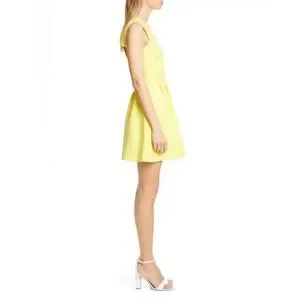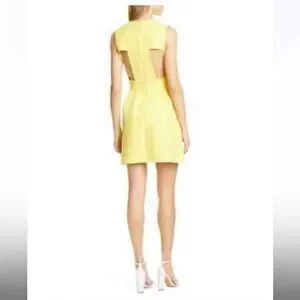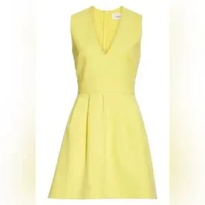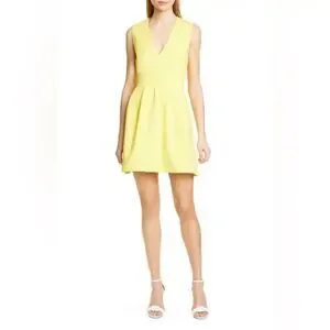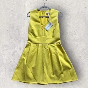 BA&SH Yellow V-Neck Wilson Fit Flare Pleated Cut-Out Back Dress Size 3 equivalent to a US Large NWT