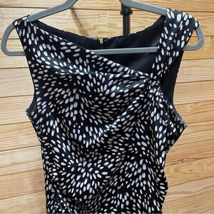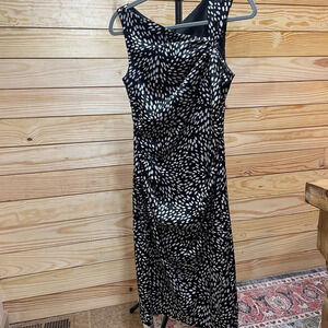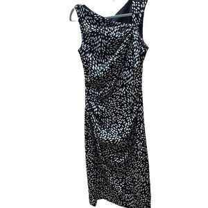 Maggie London midi dress 8 beautiful lined black and white silky feel EUC
