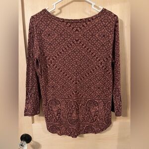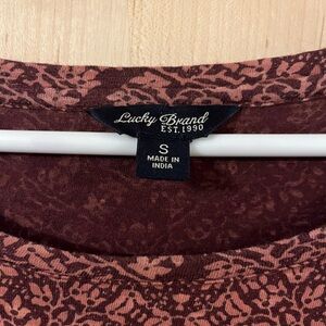 Women’s Lucky Brand top in size small. Color is kind of maroon and pink? Good used condition!
