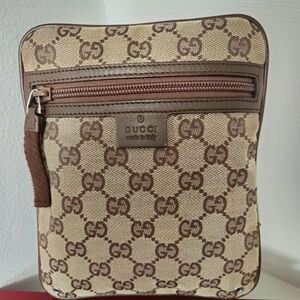 Unisex,Vintage Authentic Gucci Canvas Small Messenger/