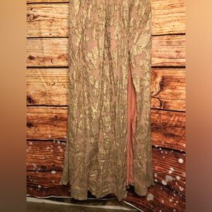 From velvet to jacquard fabric, this gown has a few of our favorite luxe things. Treat yourself to opulence when you zip up this dress with its rich velvet trim and shiny floral motif. The twisted halter neckline draws eyes up while the high slit adds that extra oomph to the skirt.