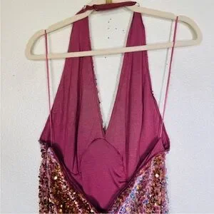 NWT Free People pink and gold sequin dress. Shimmer and shine in this stunning multicolor sequin halter dress. Perfect for making a statement at any event.
