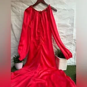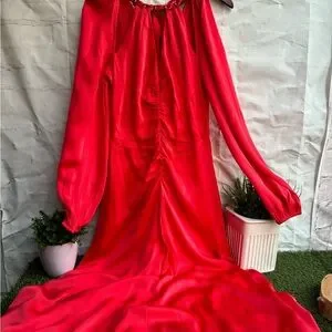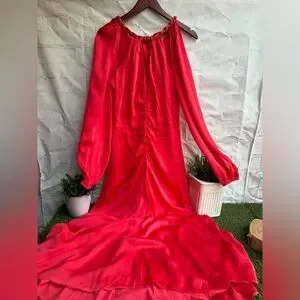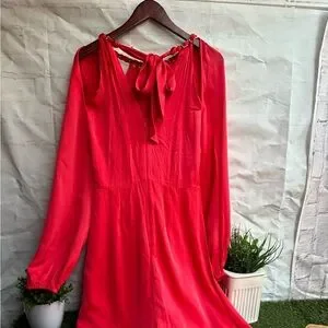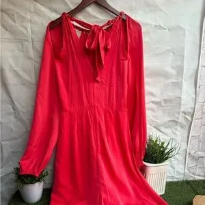 Step out in style with this elegant coral dress. Perfect for any occasion, it features long sleeves and a flattering silhouette. Add a touch of sophistication to your wardrobe.