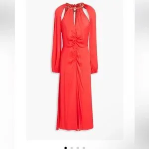 VERONICA BEARD Fay La Chain-detail Dress In Papaya Long Sleeve Size 4 NWOT