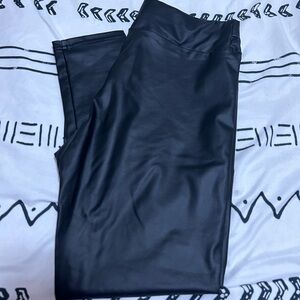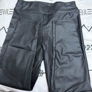 Sleek black faux leather leggings. Perfect for a chic look. Comfortable and stylish.