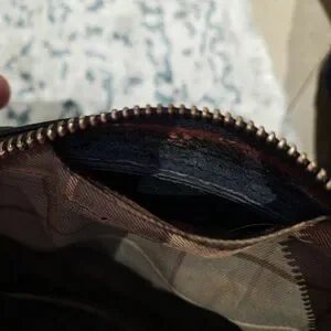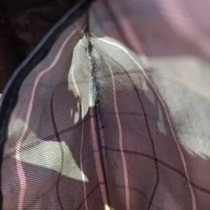 @elmastarbucks48 it's not sticky, nor oily. it's actually transfer from leather. I took out lining and the color shifts with light.