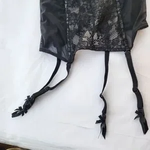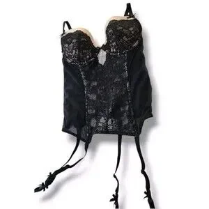 victoria’s Secret black Pink lace teddy lingerie 34B Corset Bustier Coquette Bow