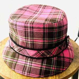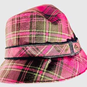 Coach Wool Pink Plaid Twist Buckle Bucket Hat Vintage
