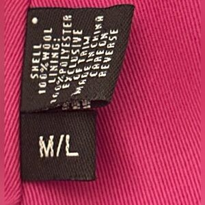 Material : exterior is 100 percent wool, interior lining is pink and of polyester material.