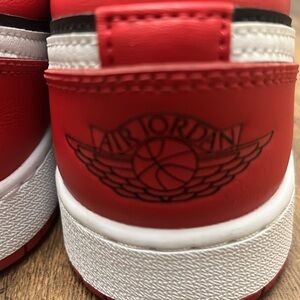 Selling pre owned, worn a few times without original box Jordan low gym red and black youth size 4 equivalent to women’s size 5.5! These have slight creasing at the toe boxes, but just look at the pictures for details and condition. Reasonable offers are welcome. Buy authentic and buy from a trusted 5 star seller with over 67K followers and growing!