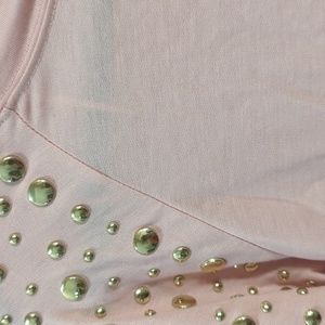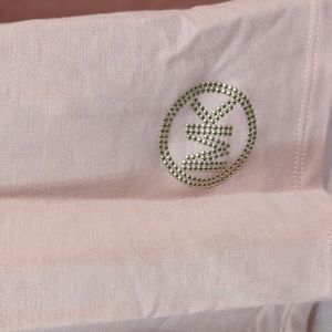 Michael Kors pastel pink, long sleeve top with gold studs on the shoulders