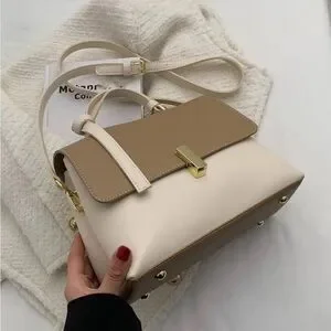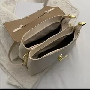 Cream Beige Two Tone Bag with Strap and Gold Clasp