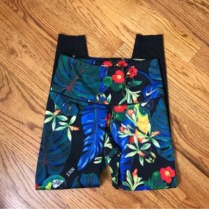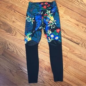 Nike Black/Blue Paradise Pattern Legging. Mesh leg detail, high waist, gently worn condition