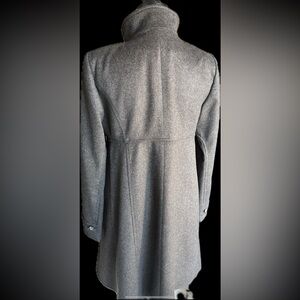 Zara Woman size Small long dark grey edgy military style jacket with buttons. Tapered fit with high collar. 100% wool. Lining is viscose. Perfect for fall and winter wear. Excellent condition!