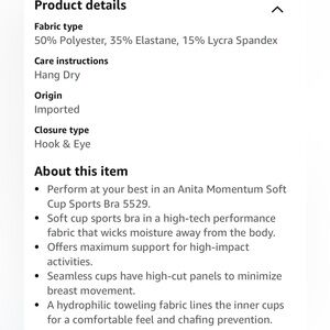 Worn less than 5 times. Excellent used condition. Not enough padding for me to wear under lighter weight tops. Otherwise great bra for warmer months. Non smoking home