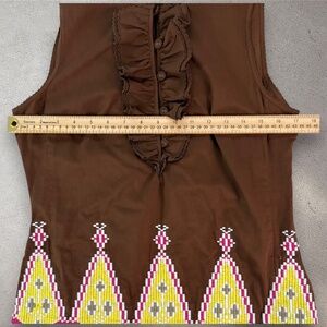 Tory Burch Embroidered Embellished Brown Colorful Blouse Ruffled Size 6